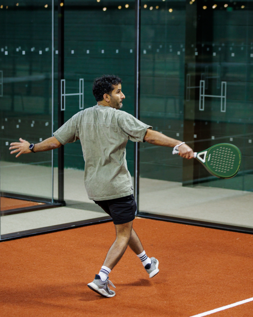 Padel is always played in doubles on an enclosed court where you can use the glass. It’s fast, social and easier to rally than traditional tennis.